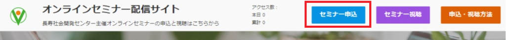(1)トップページ右上にある「セミナー申込み」のボタンをクリックしてください。