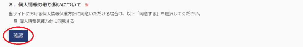 (3)申込フォームに移動したら、フォームに必要事項を入力し、最後に「確認」ボタンをクリックしてください。