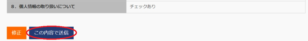 (4)入力した内容を確認し、問題なければ「この内容で送信」ボタンをクリックしてください。